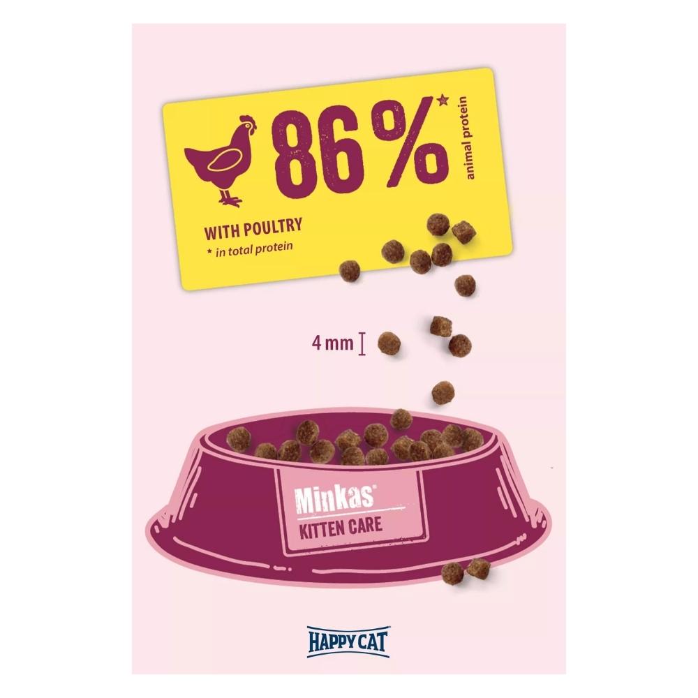 Happy Cat Minkas Kitten Care içeriğinde bulunan değerli protein kaynakları, vitamin, mineraller ve omega-3-6 yağ asitleri ile 5 haftalık yaştan itibaren yavru kedilerin özel ihtiyaçları için formülize edilmiştir.